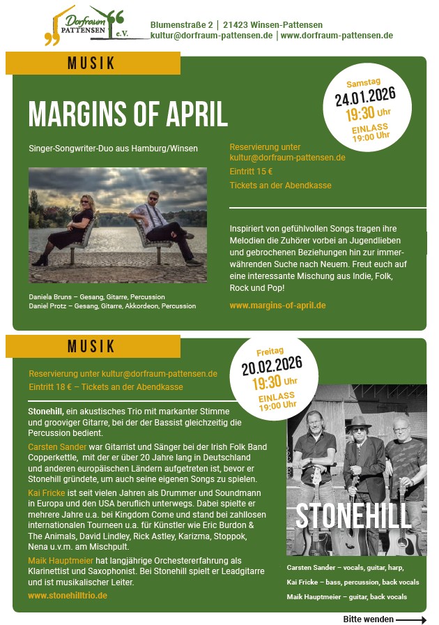 Ort: Dorfraum Pattensen / Einlass ab 19:00 Uhr