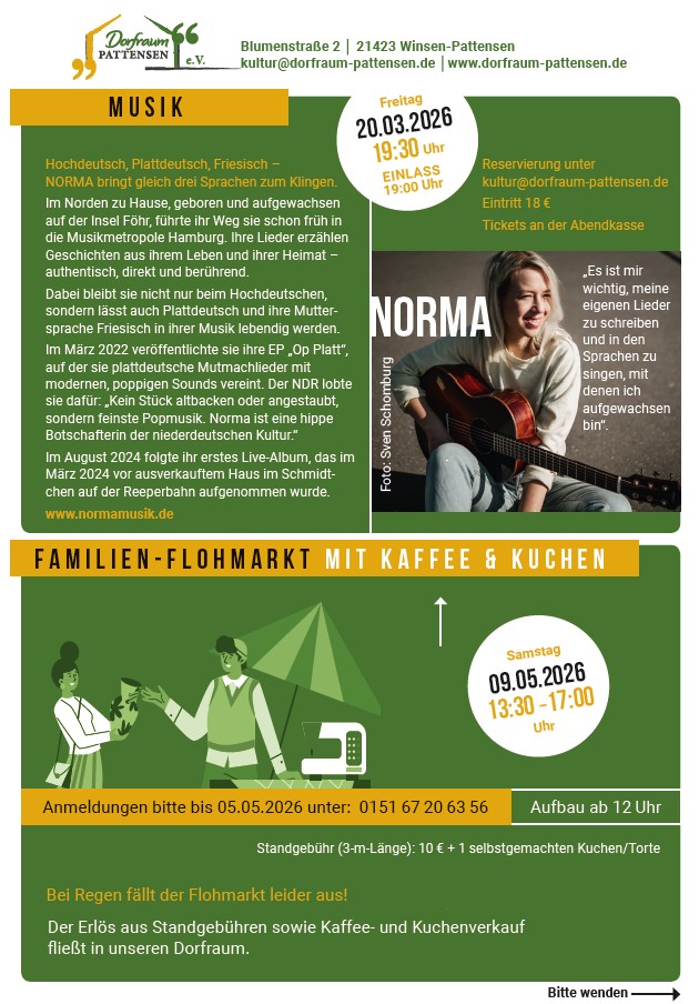 Bitte meldet euch über kontakt@dorfraum-pattensen.de an, damit wir besser planen können.